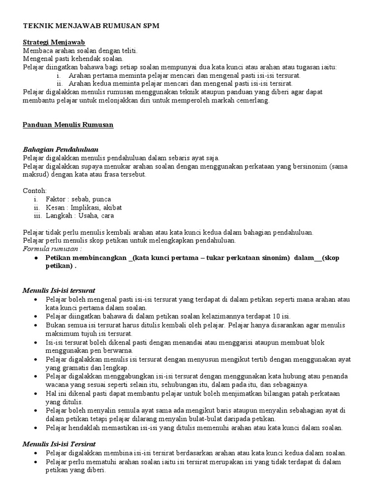 Teknik Menjawab Rumusan Spm Pdf